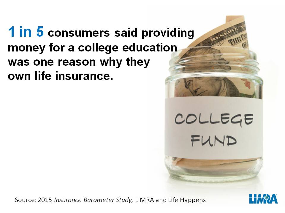 LIMRA research has found that some, but not many, are using life insurance to help pay for college. This year’s Insurance Barometer Study revealed that one in five consumers said it was one of the reasons why they bought life insurance.