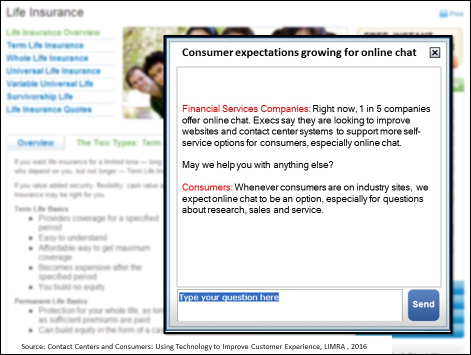 While 8 in 10 companies in the LIMRA study have self-service options, less than 1 in 5 currently offer online chat.