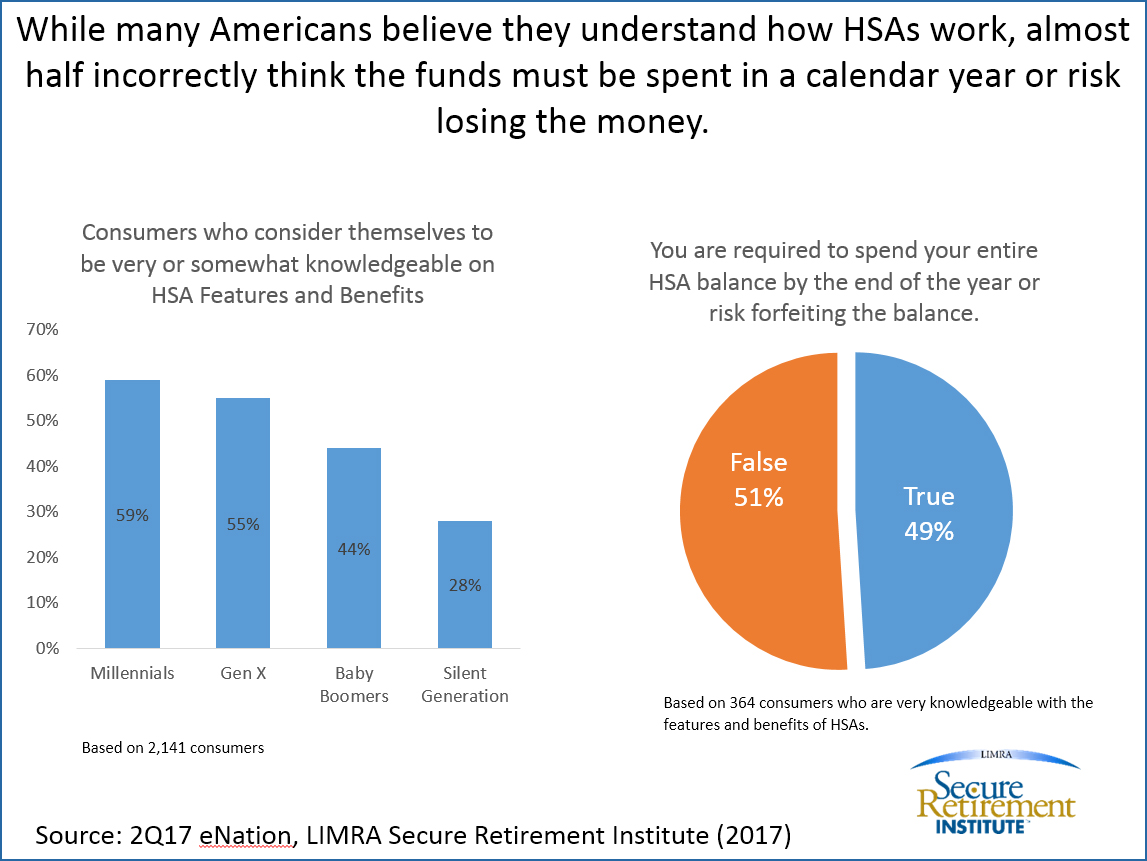 New LIMRA Secure Retirement Institute research finds 51 percent of American consumers consider themselves to be very or somewhat knowledgeable when it comes to the features and benefits of health savings accounts (HSAs).