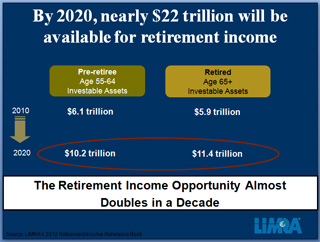 WINDSOR, Conn., Feb. 4, 2013—According to new LIMRA research, investible retirement assets of U.S. households aged 55+ will nearly double to $22 trillion by 2020 (see chart).